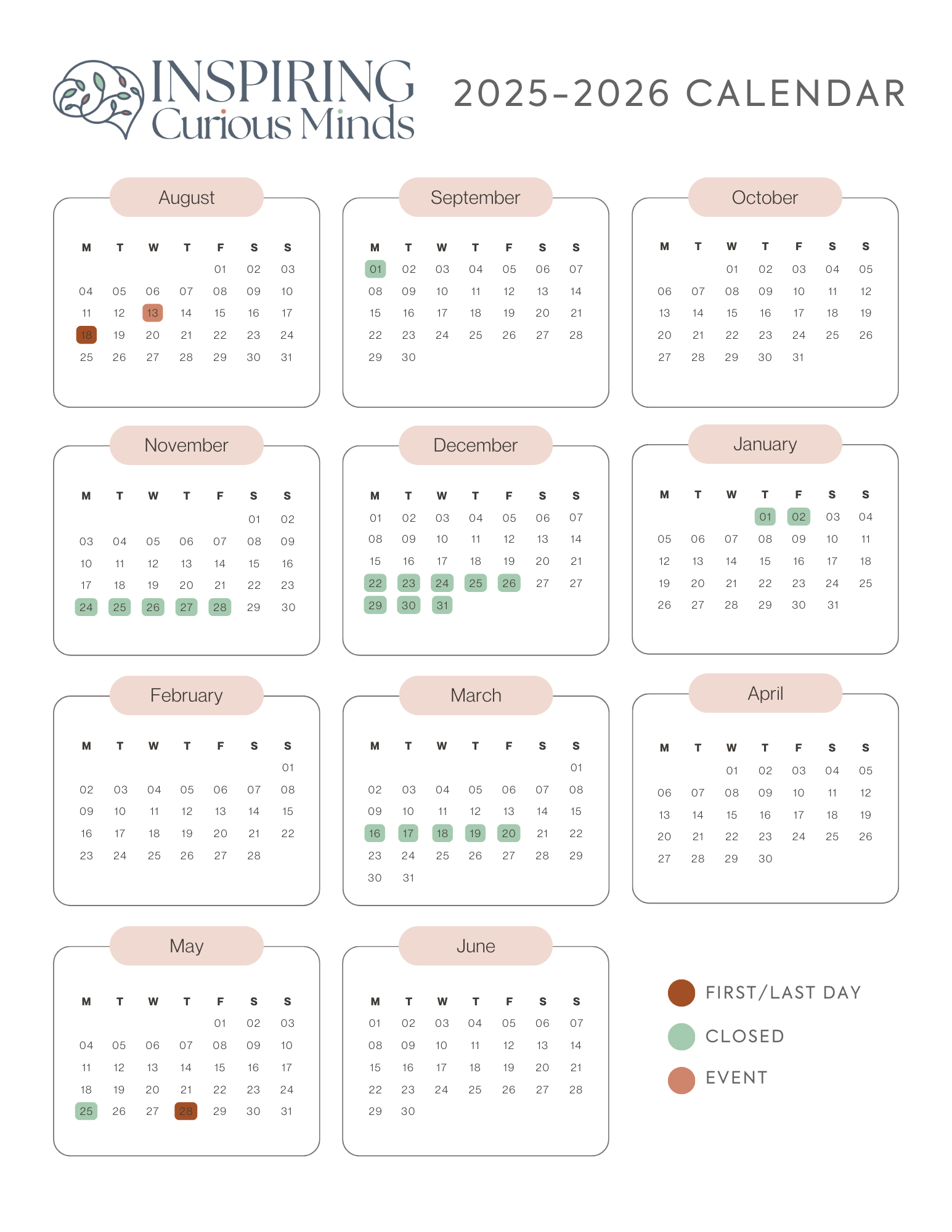 School Calendar Ready to get started?Schedule a call to discuss how we can support your child. Schedule a Discovery Call
